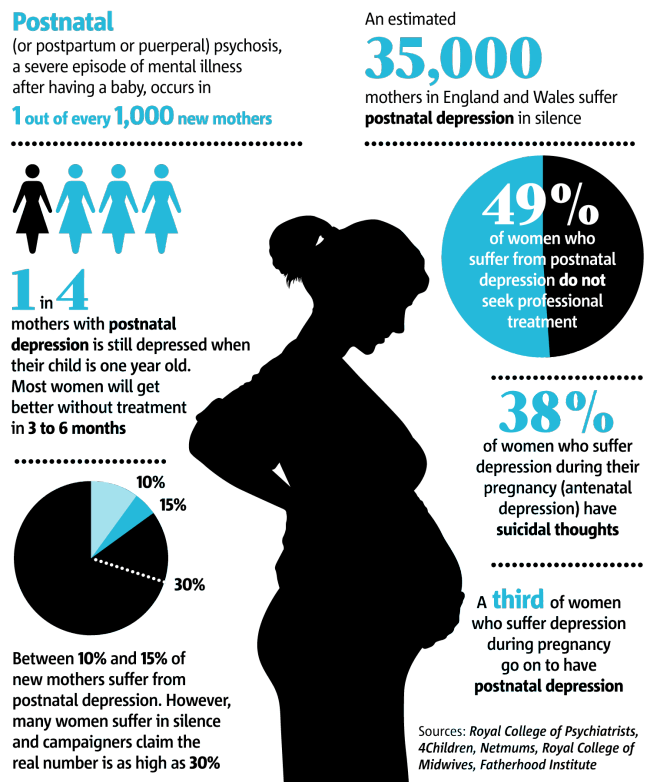 Postnatal depression affects up to 15 per cent of new mothers, according to official figures, but health campaigners fear the figure may be twice that because of the reluctance of many women to admit their suffering. Because of the cluster of symptoms which come with it, they may not know they are suffering.